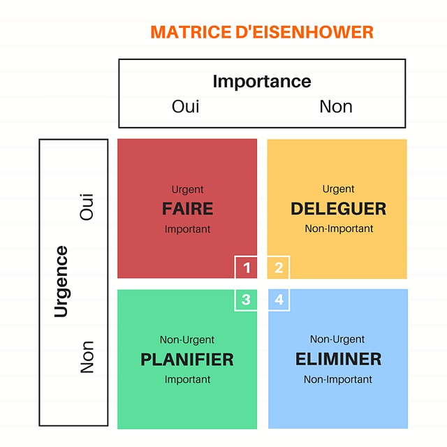 Il est nécessaires de distinguer l’urgent de l’important, une tâche importante n’est pas forcément une tâche urgente est vice versa comme Eisenhower l’a dit: « Ce qui est important est rarement urgent et ce qui est urgent rarement important.